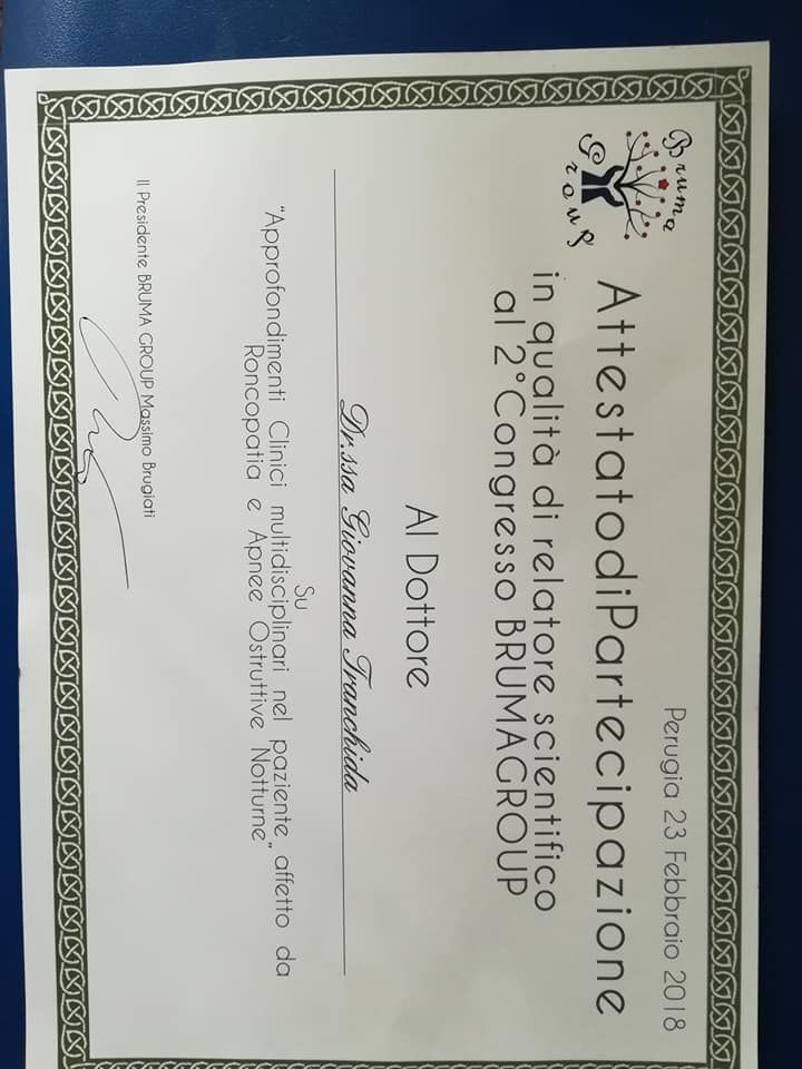Dal 2017 è iscritta alla SINF, scuola di medicina funzionale regolatoria, al fine di ampliare le sue conoscenze sulla fisiopatologia e migliorare lo stato di salute dei suoi pazienti.